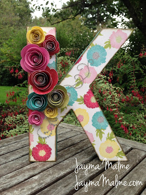 Here’s one of the items I made for her nursery. I used a paper mache letter K from Joann Fabrics & Crafts and covered it with paper, flowers cut with the Art Philosophy Cricut cartridge, and Sparkles Flourishes (I seriously LOVE these!).